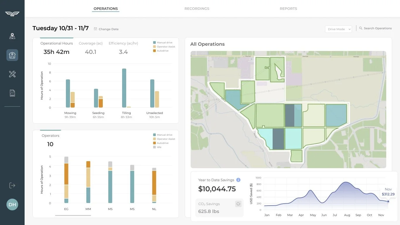 A map based interface allowed users to monitor multiple operations on their farm in real time. Reducing visual clutter by prioritizing and nesting visual data allowed our users to focus on the most important aspects of their operations.